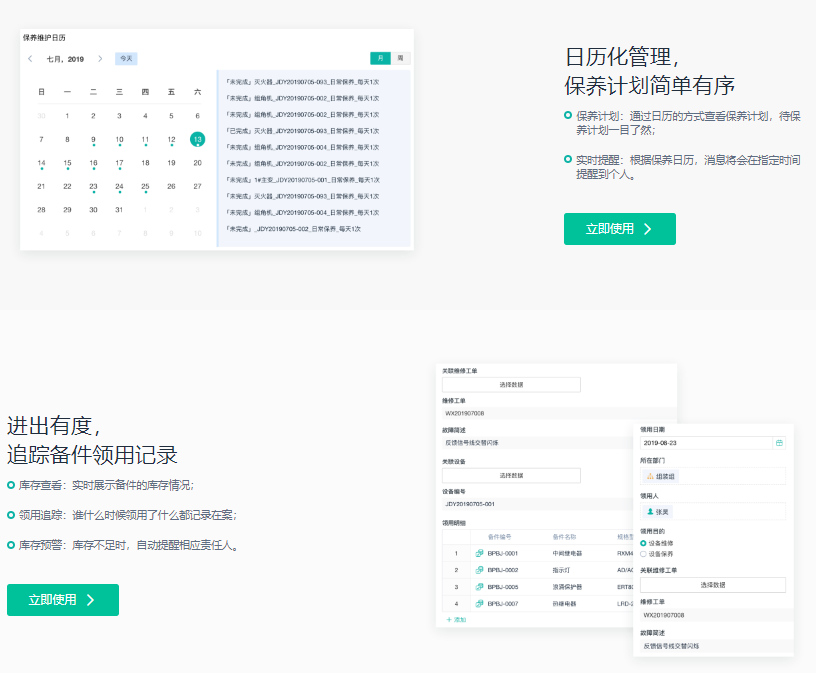對設備進行登記,進行維修保養記錄,以及維修保養進度追蹤